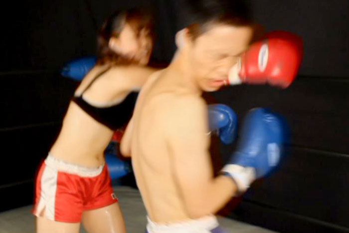 男子チャンピオンの上に跨り強烈なパンチを繰り出すMIXボクシング!