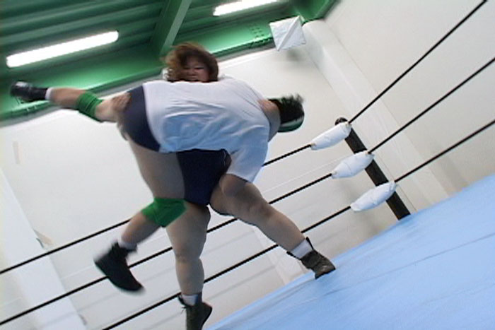 男勝りの巨女レスラーひとみに、全く歯が立たずフルボッコ。