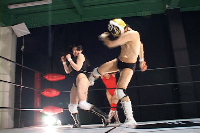一対一のミックスプロレスから始まり、最終的には二人同時責め!