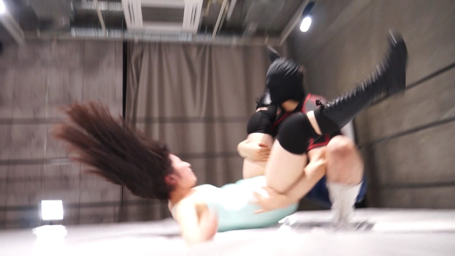 白い女体を絡ませ、本格的なプロレス技で覆面男を圧倒する。